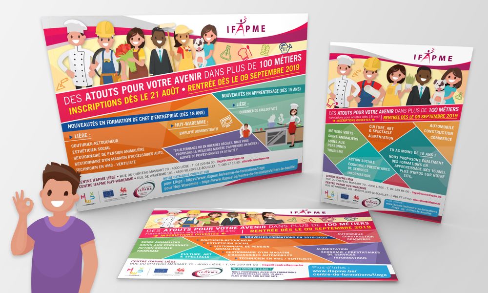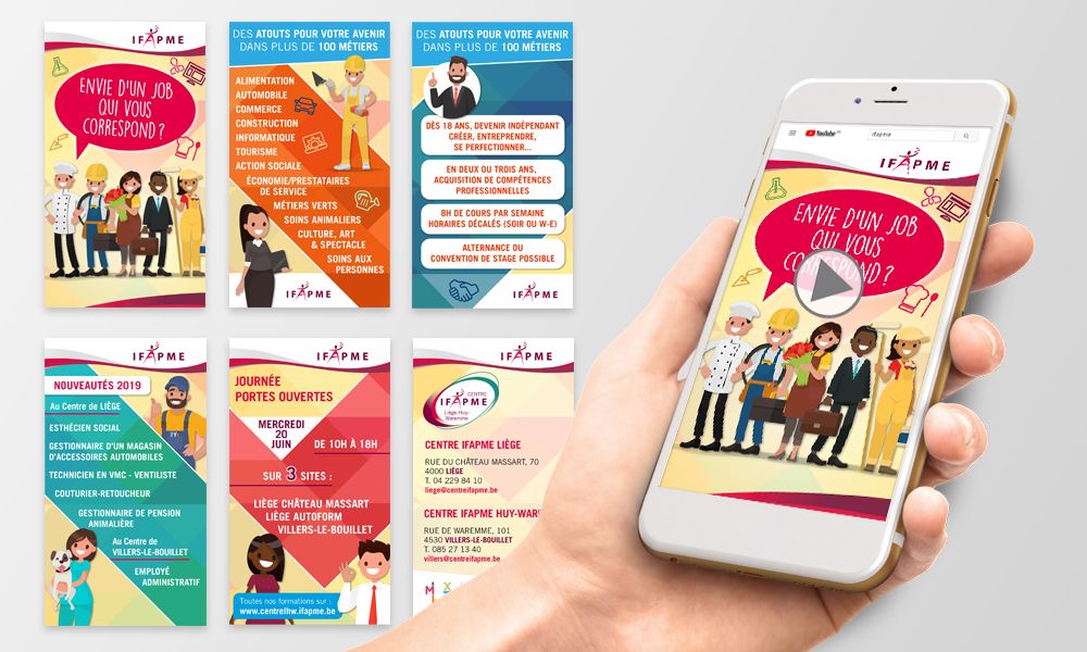 Afin de promouvoir ces formations, nous avons créé des animations en motion design destinées à Youtube, des pages web interactives et des visuels diffusés sur les réseaux sociaux (Facebook, Instagram) et dans la presse quotidienne. Sans oublier la campagne radio qui est venue renforcer la communication visuelle !